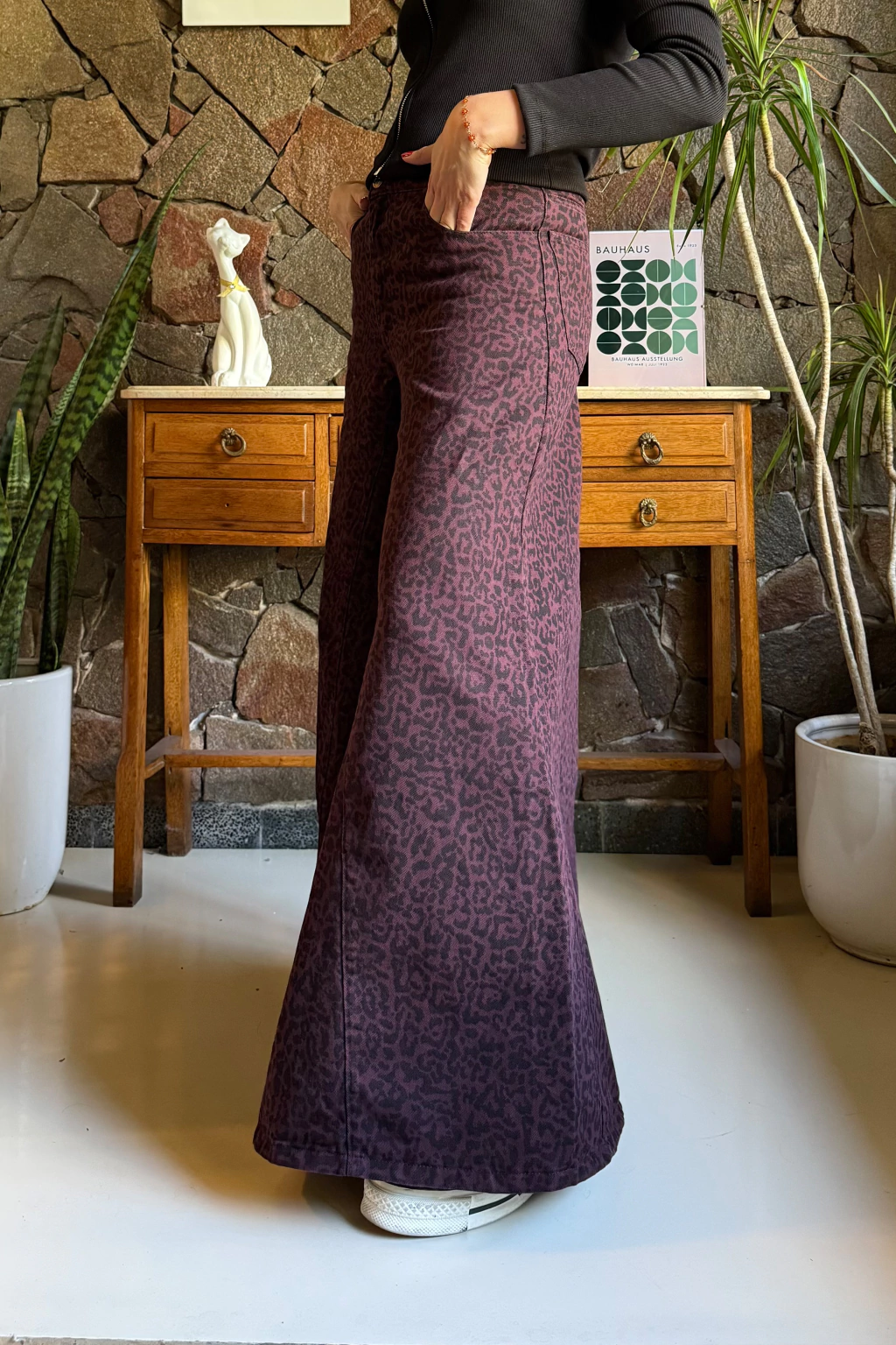 Este pantalón de gabardina rígida destaca por su animal print único y piernas extra anchas que aportan un look moderno y audaz. Cuenta con 5 bolsillos de corte jeanero, ideales para llevar lo esencial siempre a mano. El bordado del logo en el bolsillo trasero suma un toque de distinción y calidad.