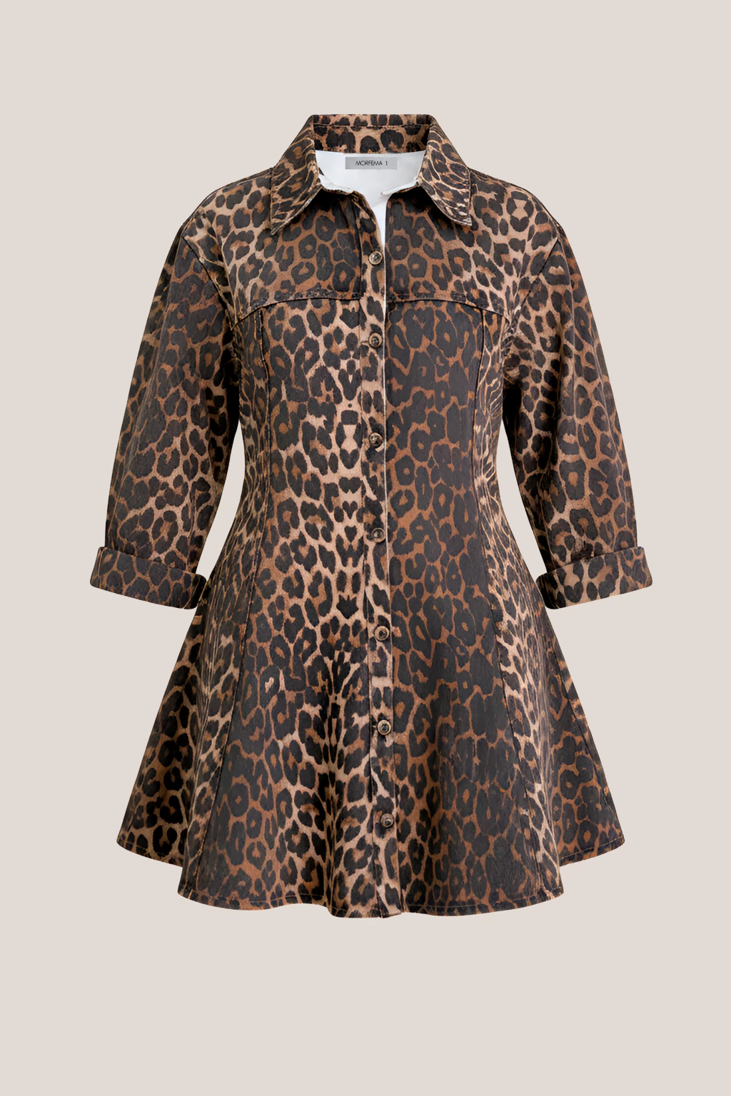 El Vestido Preston es una prenda de gabardina rígida 100% algodón, con un sofisticado animal print. Tiene mangas tres cuartos y charreteras funcionales para acortarlas según tu preferencia. Destacan la cartera y el pie de cuello en tono natural, junto con botones de carey que realzan la calidad y el diseño.